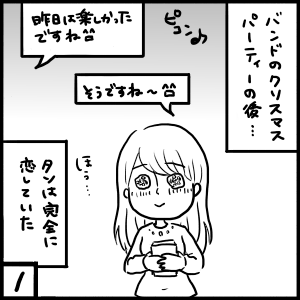 タソとロールキャベツ旦那 馴れ初め編【9】 2019年04月05日 バンドメンバーとのクリスマスパーティーの後も、LINEを楽しんでいた私たち。 少し前から彼のことは好きになっていたけど、クリスマスパーティーの足ツンツン効果か好きの気持ちが更に大きくなっていました。 もうすぐクリスマス。 クリスマスパーティーを ... 続きを読む